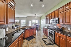 Open living room w/ fireplace, gourmet kitchen w/ granite countertops, covered back patio offers views of the lake